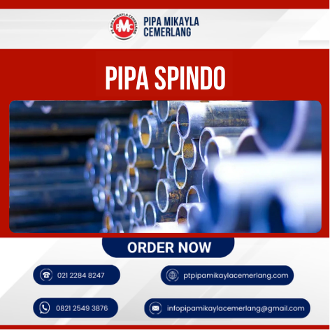Pipa SPINDO (PT Steel Pipe Industry of Indonesia Tbk) adalah salah satu produsen pipa baja terbesar di Indonesia yang memproduksi berbagai jenis pipa baja las (ERW/SSAW) Non Seamless berkualitas tinggi, seringkali bersertifikasi SNI. Pipa Spindo dikenal karena ketahanan, dimensi yang akurat, dan ketahanan terhadap korosi.