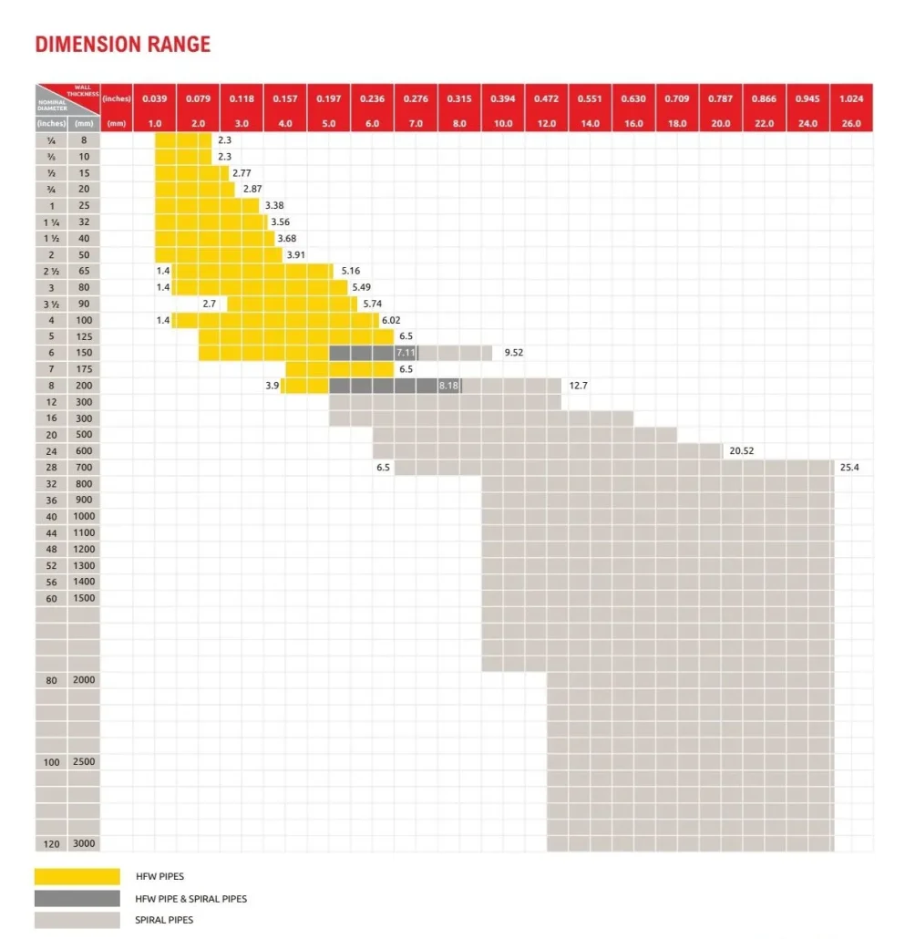 RANGE OF SIZE